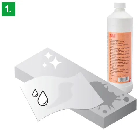 - Use specialized cleaners: Opt for a specific cleaner such as 3M™ VHB™ Surface Cleaner. Avoid household cleaners.