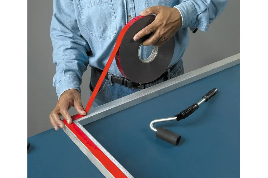 PE foam backing material with high performance acrylic adhesive. Good resistance to weather. Easy to use